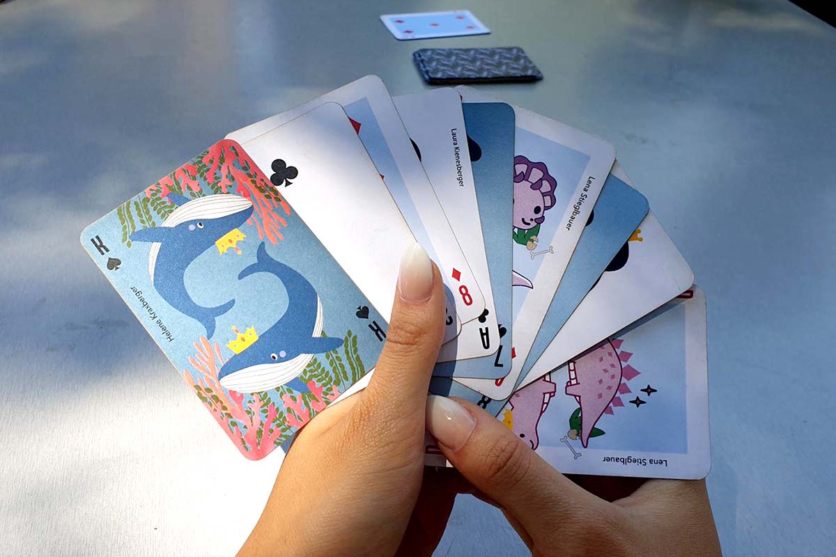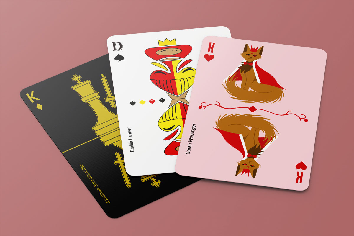 Die 1a HLW gestaltete zwei Sets an Kartenspielen. In Gruppen von drei bis vier Schüler*innen entwarfen sie die Bildkarten: Bube, Dame, König und gegebenenfalls auch Ass.