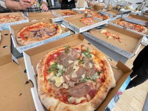 Zum Abschluss wurden wir noch mit einer Variation von leckeren Pizzen belohnt, die wir zusammen mit viel Lachen genossen.