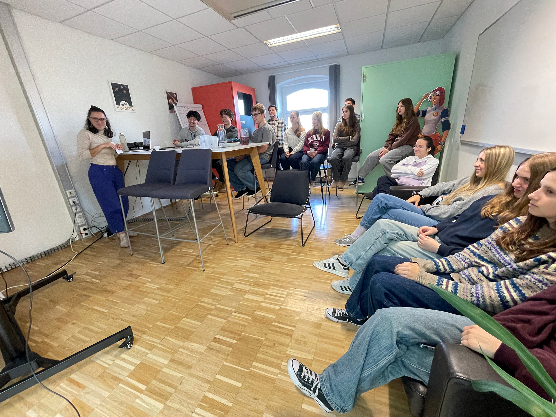 Besonders spannend war die Übung, bei der wir dem Mitarbeiter genaue Anweisungen geben durften, die er dann wie ein Computer ausführte. Dabei merkten wir , wie wichtig klare Abläufe beim Programmieren sind. In der Firma herrschte eine richtig angenehme und entspannte Arbeitsatmosphäre. Alle begegneten uns mit Freundlichkeit und nahmen sich Zeit zum Beantworten aller unserer Fragen.