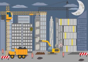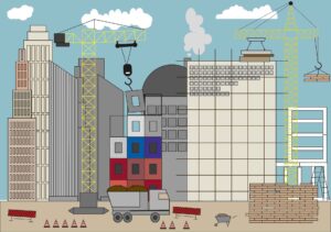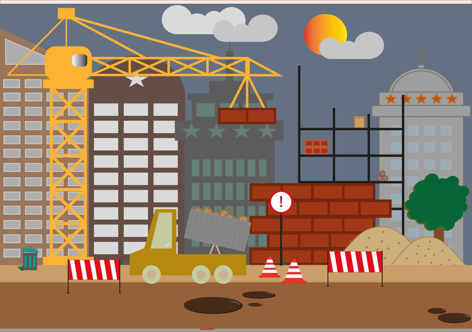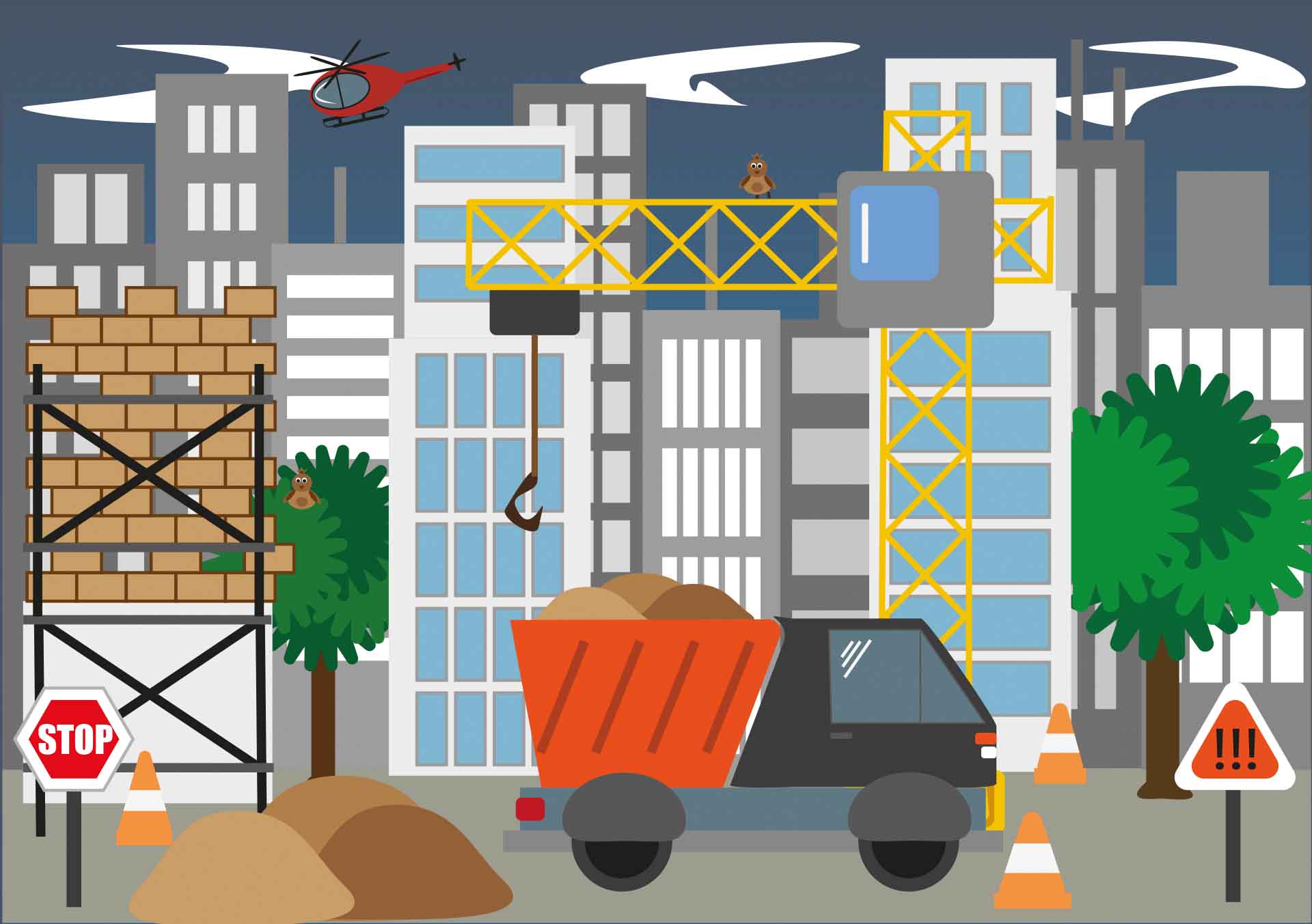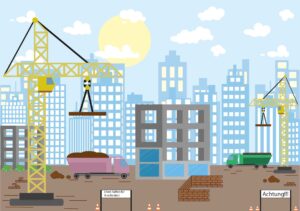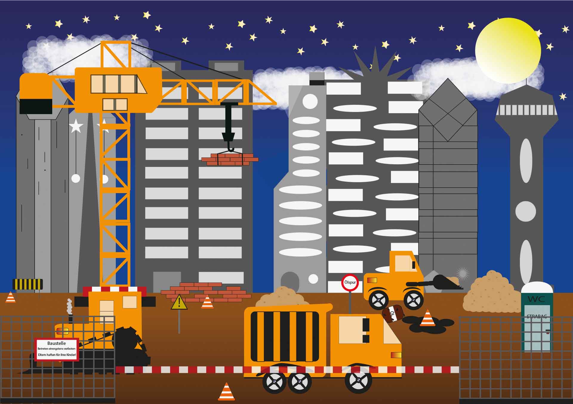 In den ersten Klassen entstanden im Fach KMD (nach nur wenigen Wochen Unterricht) sehr beeindruckende Illustrationen. Aufgabenstellung war die Gestaltung einer Baustellenszene unter Berücksichtigen der räumlichen Wirkung, der Farbgebung und der Vielfalt in der Gestaltung der Bildelemente.