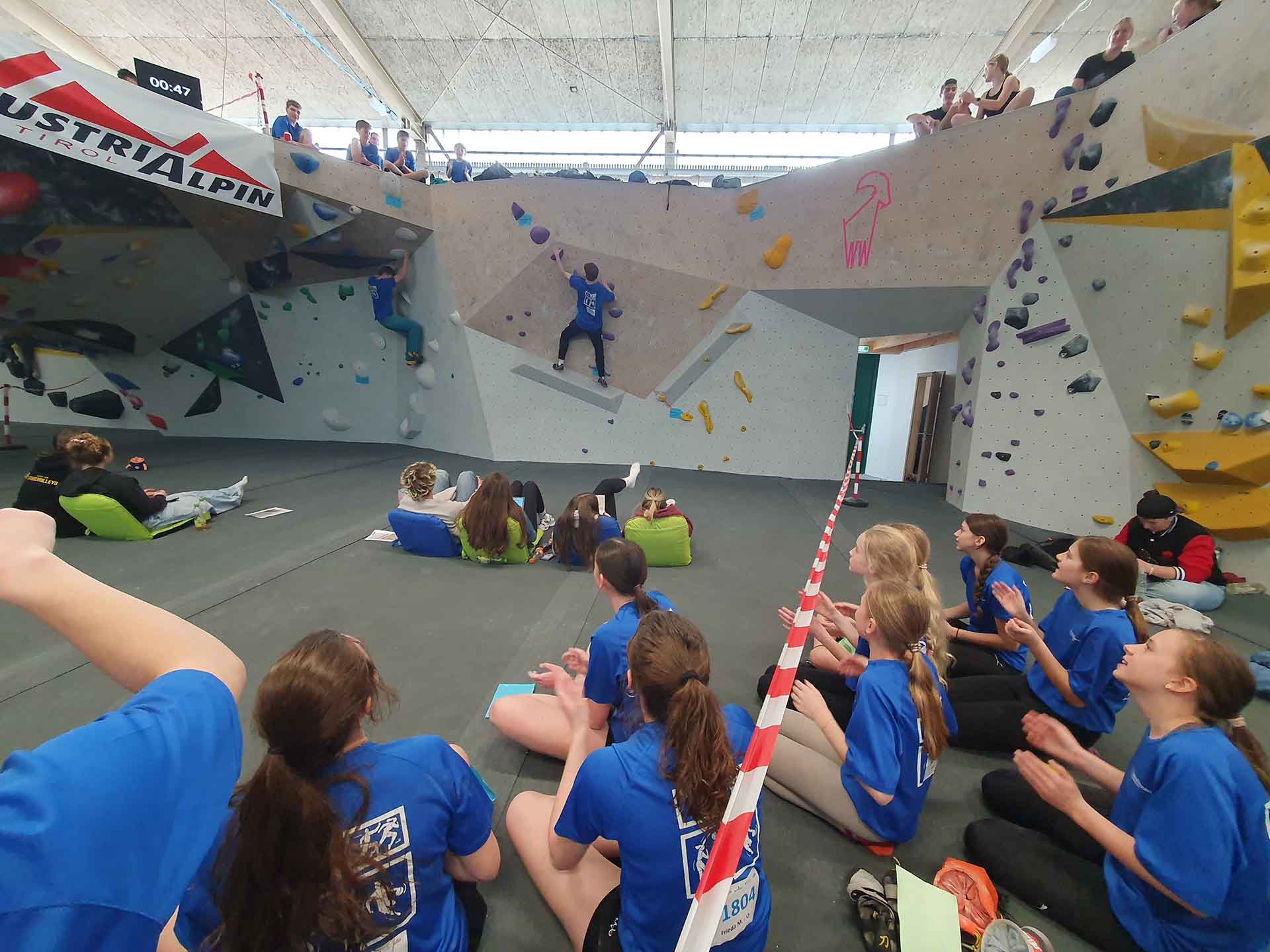 Mit 30 Schüler:innen aus AHS und HLW war die Kreuzschwesternschule bei der Schul Olympics Boulder‑Landesmeisterschaft stark vertreten. Alle zeigten große Motivation und tolle Leistungen. Moritz Hammerschmied (2.AHS) und Valentina Scalet (4.HLW) holten jeweils den Landesmeistertitel. Besonders beeindruckend war der lautstarke KSL‑Teamgeist in der Halle. Wir sind stolz auf euch!